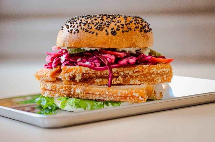 Flæskestegsburgeren er skabt med udgangspunkt i velkendte danske smage, fortolket i et moderne og indbydende format. Burgeren serveres i en blød briochebolle og er opbygget med saftig flæskesteg, der giver fylde og smag, kombineret med sprød, frisk salat for balance og tekstur.