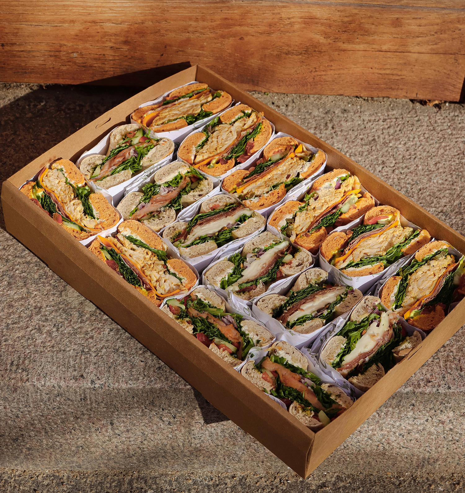 bagels, som er halveret og anrettet i box, lige